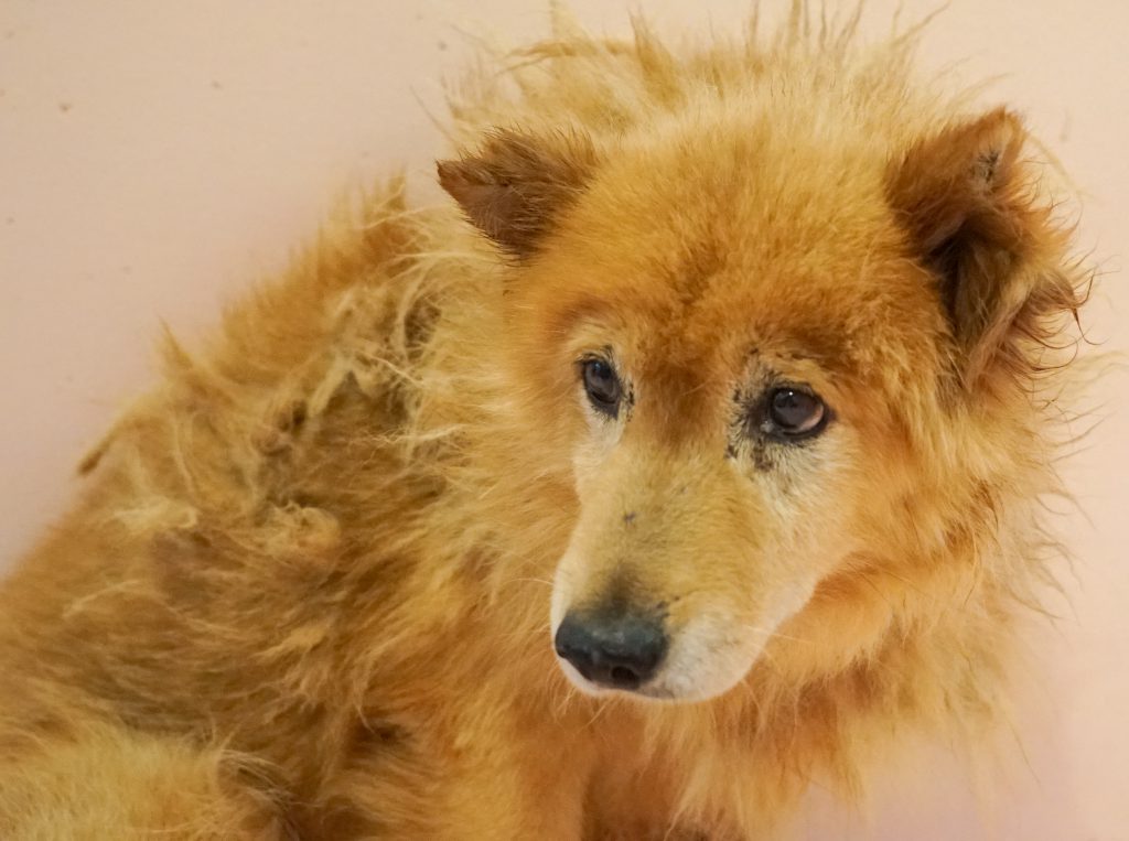 わしは「トムヤム」。わしは飼い主さんと暮らしてたんじゃが年のせいかいつの間にか愛護センターに保護されておって、それからピースワンコに来たんじゃ。後ろ足が悪くてゆっくりしか動けんが、ピースワンコでいつも元気にのんびり暮らしておる。わしは年じゃから家族になって支えてくれると嬉しいのぅ。