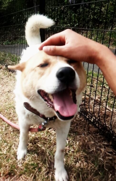 はじめまして!俺、ジャイアン!俺を捨てた人間なんか大キライで、噛みついていたら殺されそうになった所をピースワンコに保護されたんだ。