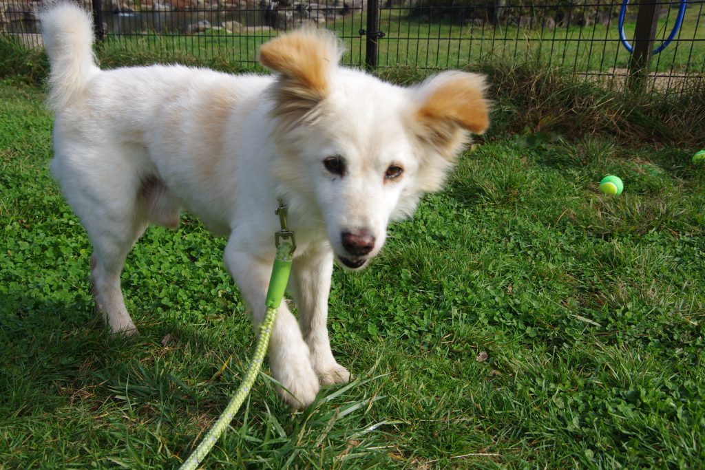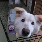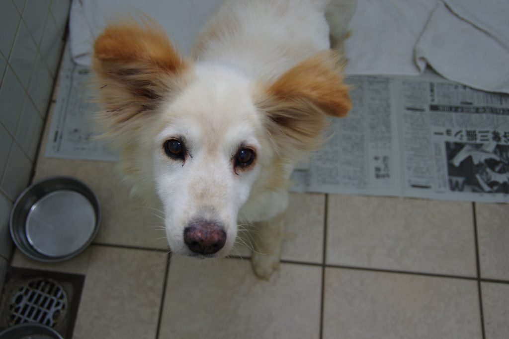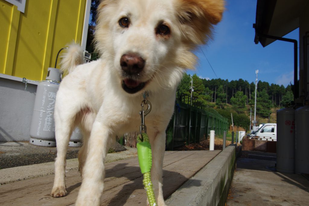筋肉も落ちて、おしりが脱肛して、痛くて辛かったんだ。ピースワンコに来てからは、いっぱい食べて元気になって、脱肛も治ったからいいウンチもできるよ。