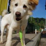 筋肉も落ちて、おしりが脱肛して、痛くて辛かったんだ。ピースワンコに来てからは、いっぱい食べて元気になって、脱肛も治ったからいいウンチもできるよ。