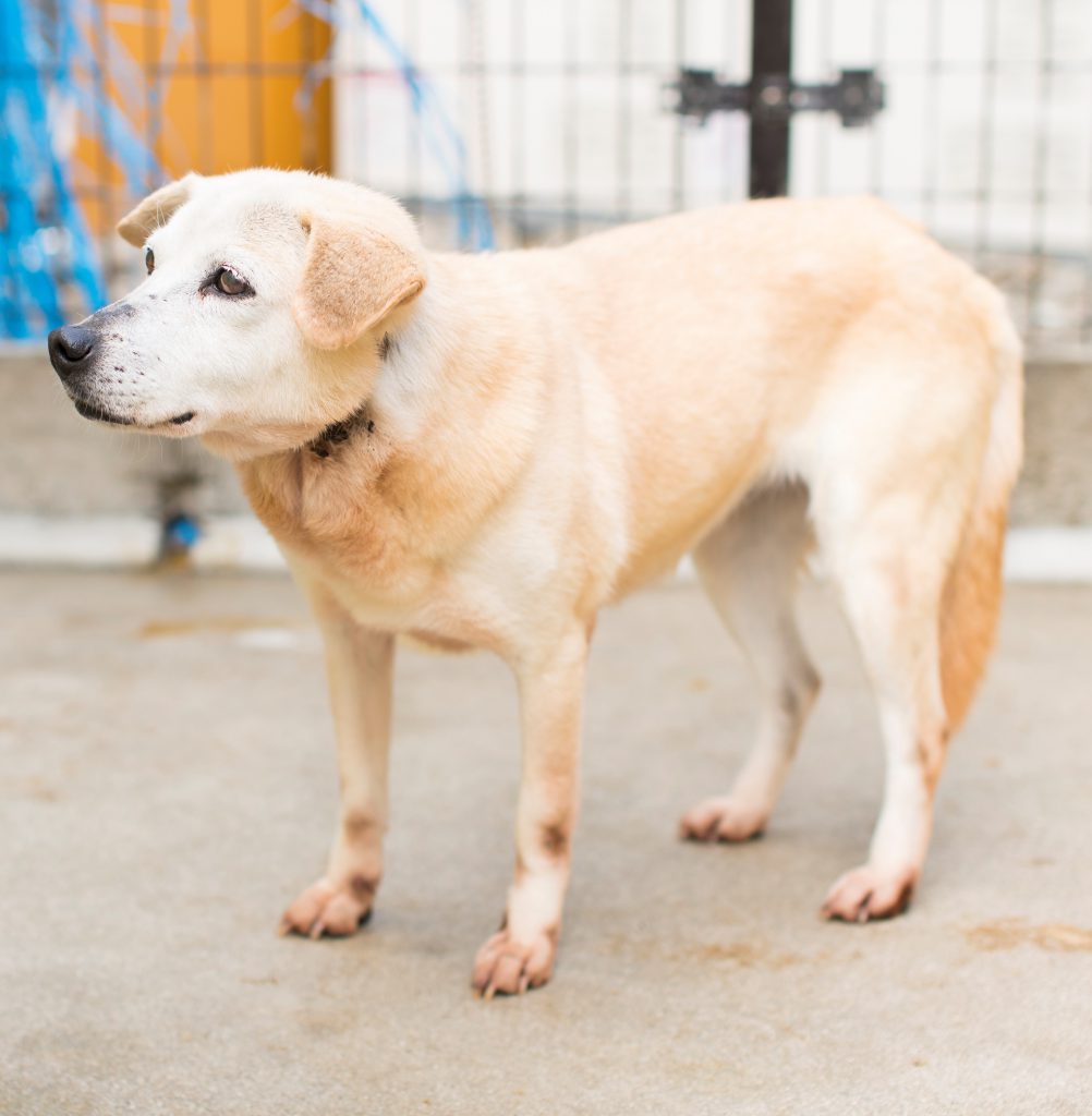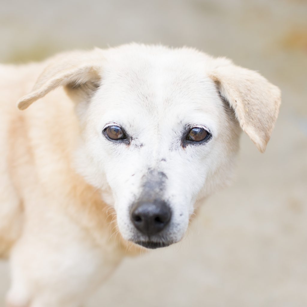 ワシはタピオカという名前じゃ。このツヤツヤした目がタピオカそっくりで綺麗じゃろ?それでワシの名前を覚えてくだされぇ!ワシは昔、飼い主さんと暮らしておった。かわいい首輪もつけてもらって、幸せじゃったのぅ。じゃがある日、飼い主さんとはぐれてしまい、それっきり会えずに月日は流れて、気がついたら首輪が首を締めつけて痛かった。でも、それ以上に飼い主さんに会えない寂しさでとてもつらかったのぅ。じゃが、ピースワンコに保護されて、治療もしてもらい、おしゃべりする仲間もできた。時々八つ当たりしたり、スタッフさんに文句を言ってみたり、それもワシの魅力の一つじゃよ(笑)こんなワシと家族になって、見守ってくれんかの?