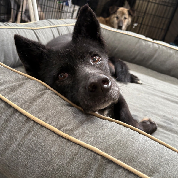 | 性格 | マイペースでおやつ、クッションが大好きなおじいちゃんワンコです。おやつを見るとキラキラした目で食べてくれます! 最近は撫でられるのも少し好きそうで、気持ちよさそうにしてくれます! |
