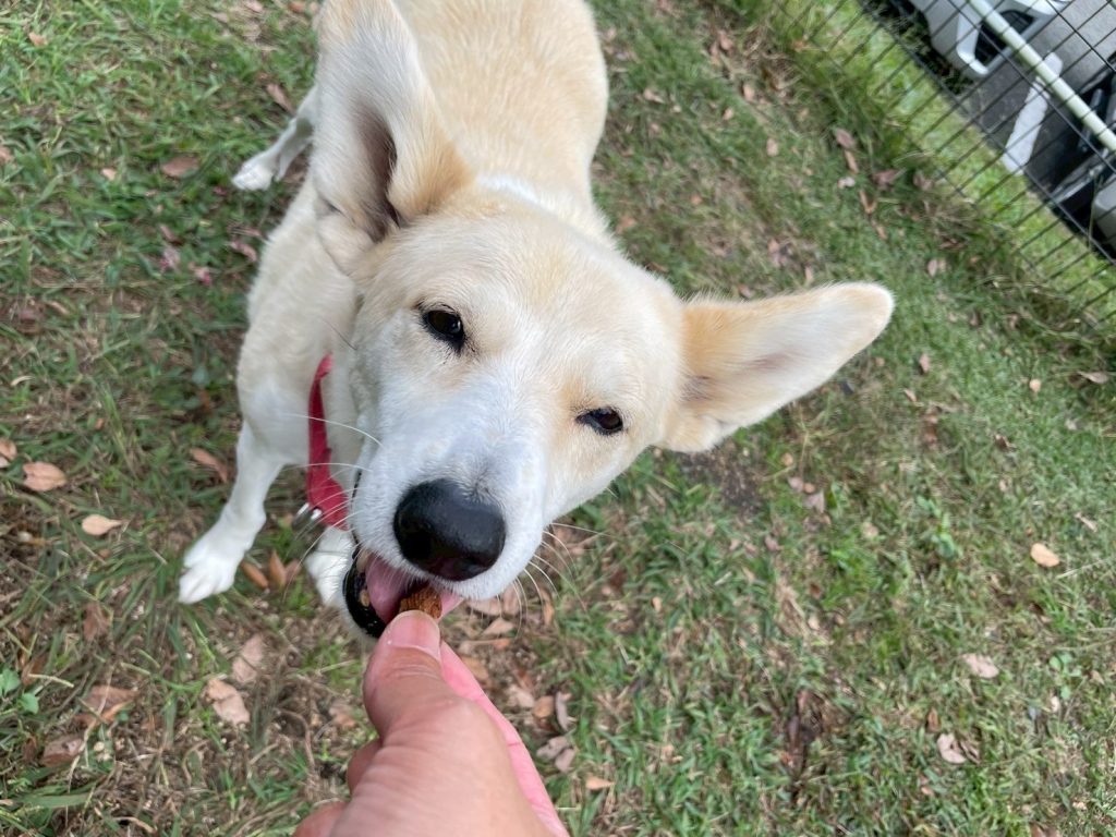 毎日ドッグランでのんびりくつろいで、時にはおやつを食べて優雅に過ごしております。